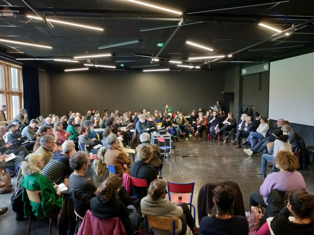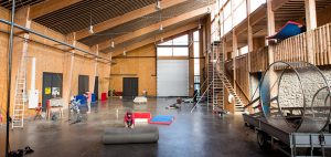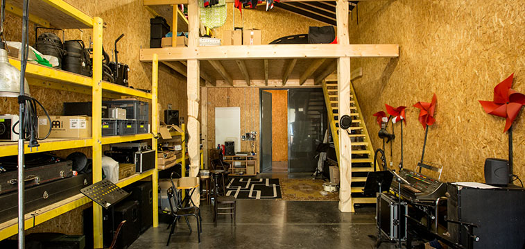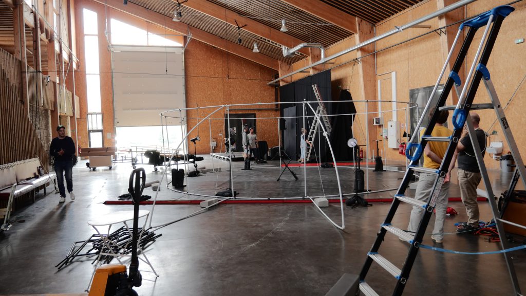 La Halle est l’espace centrale du 37e Parallèle et un lieu de passage pour les accès aux sanitaires et aux laboratoires des compagnies permanentes. Du passage ponctuel peut avoir lieu selon le planning de travail et de tournées des équipes.